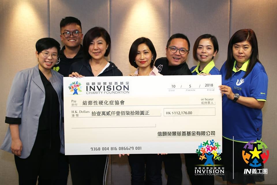 IN128把二十二萬四千三百多元的善款捐到信願榮景慈善基金,再透過基金會把當中十一萬二千多元捐到結節性硬化症協會,支持更多有需要的人。