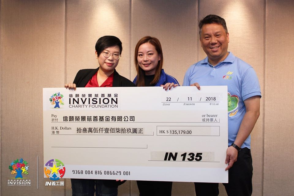 IN134及IN135分別籌得19萬2千多元及13萬5千多元善款,亦分別透過基金會把9萬6千多元捐到香港傷健共融網絡及6萬7千多元捐到香港盲人輔導會,以支持香港的殘疾人士的生活和發展。