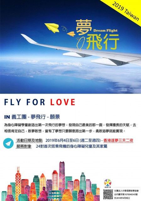 台灣IN義工團舉辦之「台灣夢飛行 2019」活動,將於6⽉4⽇⾄6⽇啓航來港!